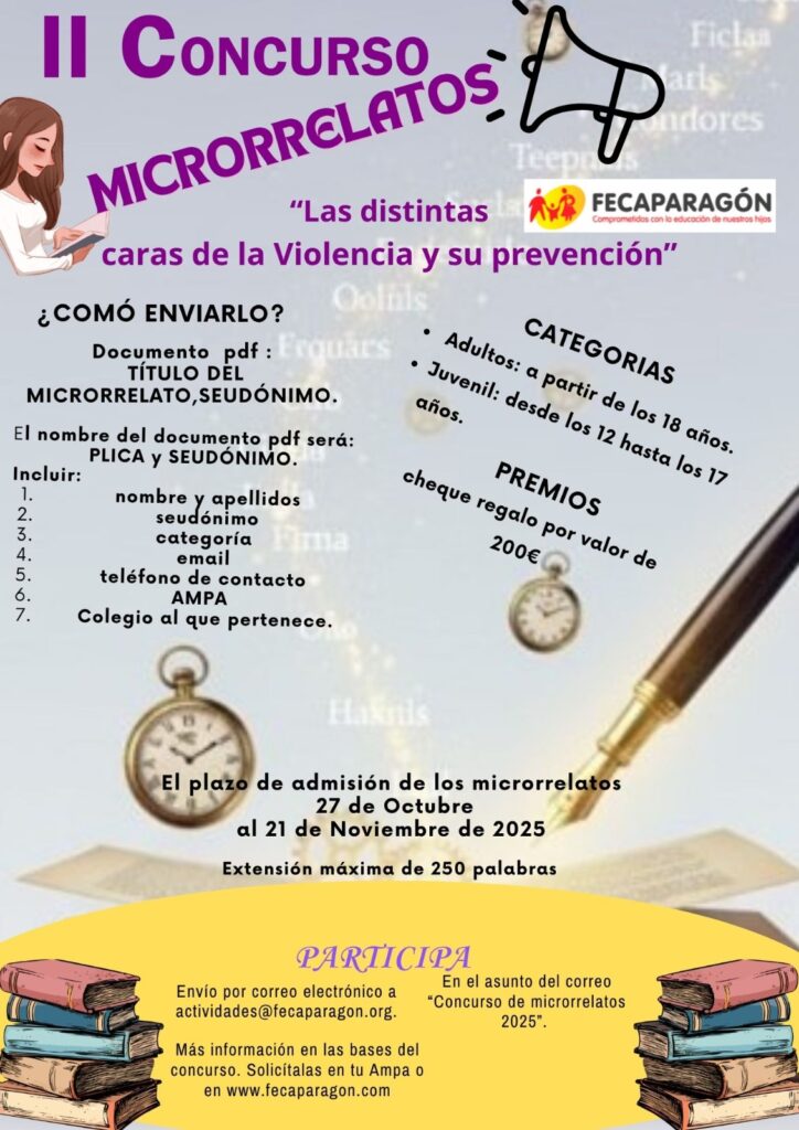 La Federación Cristiana de Asociaciones de Padres y Madres de Alumnos de Aragon – FECAPARAGON convoca un concurso de microrrelatos que se regirá por las siguientes bases: