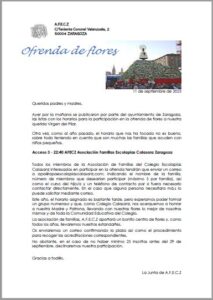 Podéis descargar el comunicado original, en formato pdf, pulsando sobre el siguiente enlace: Participación Ofrenda de Flores