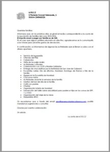 Nota: Somos conscientes que en el momento de la publicación de esta nota en la web, y transcurridos 12 días desde el comunicado, ya sabemos que varias de las actividades extraescolares reflejadas en dicho documento, no se van a llevar a cabo, pero mantenemos la publicación original para que podáis consultarlo tal cual en cualquier momento.